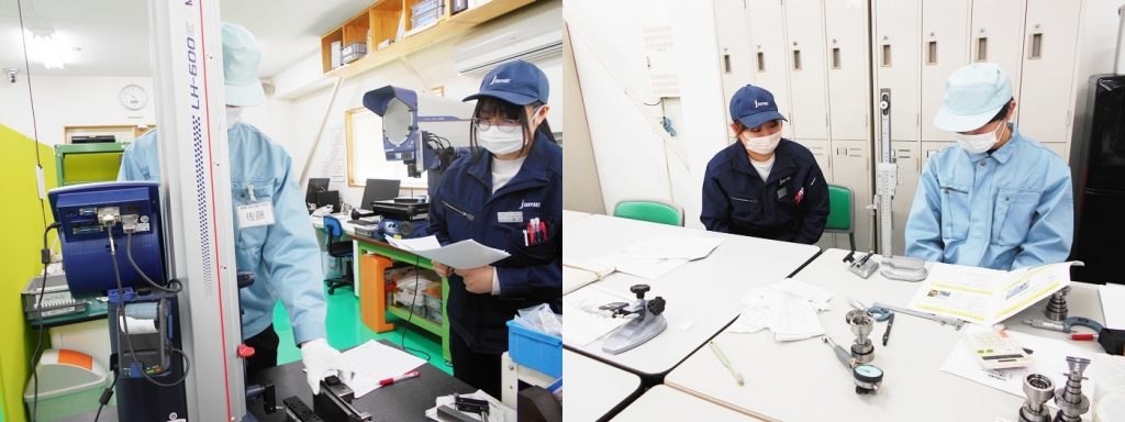 実際に扱う加工品の材質や検査道具の使い方等の説明をしてから、検査を行っていきました。