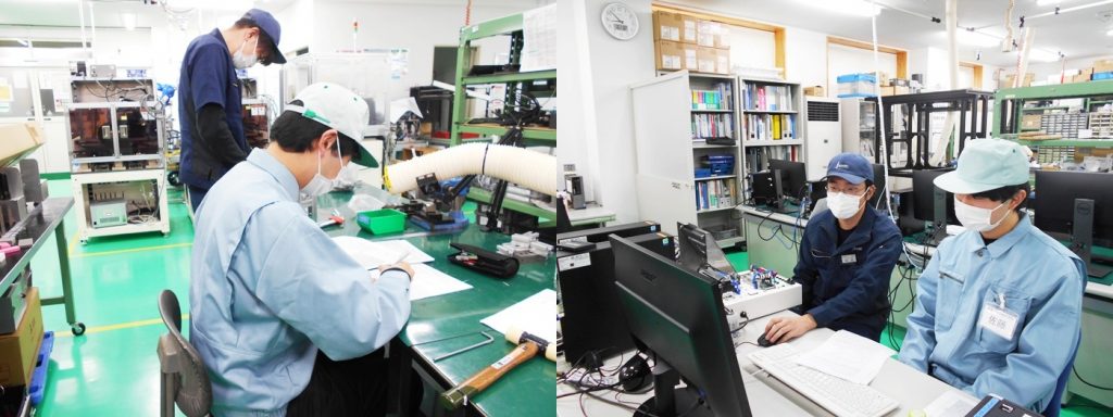 技術課では、組み立て実習やはんだ付け、カシメ作業等の研修を行いました。